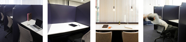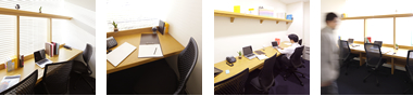 ゆったり空間に天然木の高級な作りの家具と豊富な収納スペースをご用意しました。 1~5人の豊富なバリエーションから選べます。会社の成長に合わせたステップアップが出来るのは大型施設ならでは。 デスクワークに疲れたらラウンジで読書&コーヒーブレイクなど様々なシーンに対応できる施設です。